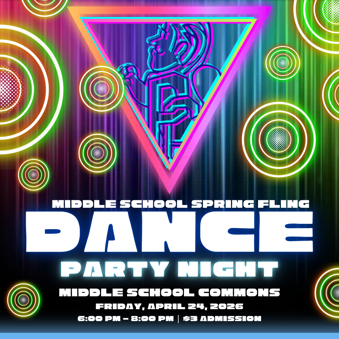 🎉 Spring Fling = ON! 🎶Middle schoolers—this is your night! Join us for the Spring Fling Dance on Friday, April 24 from 6:00–8:00 PM. Grab your friends, hit the dance floor, and get ready for a nigh...