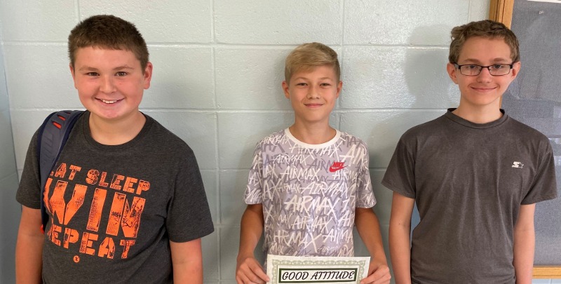 Congratulations to these Middle School good attitude winners for the month of September. These students have shown positive attitudes in the classroom and amongst their peers. They received 2 ten-point coupons with their certificates. Thank you for being a great example for everyone at Putnam County R-I! The winners are (left to right) 6th-Grade Bentley M., 7th-Grade Hunter S., and 8th-Grade Christian H.